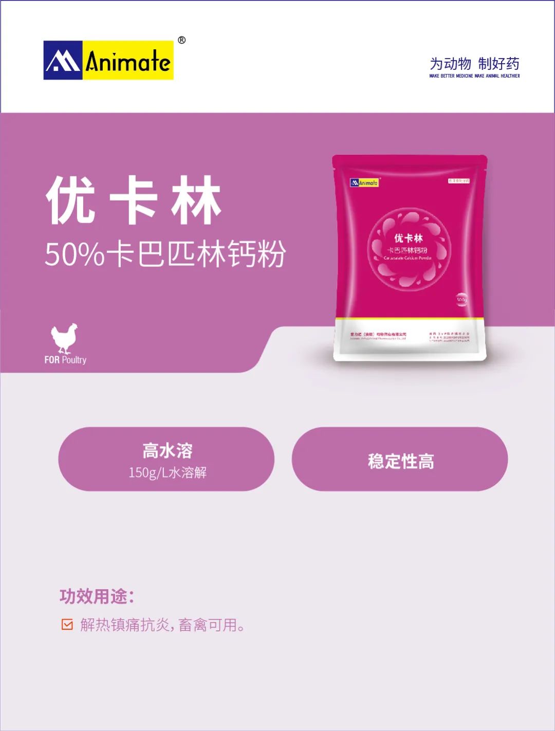 解热镇痛抗炎,用于控制鸡的发热和疼痛。