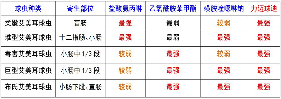 ● 抗球虫谱广