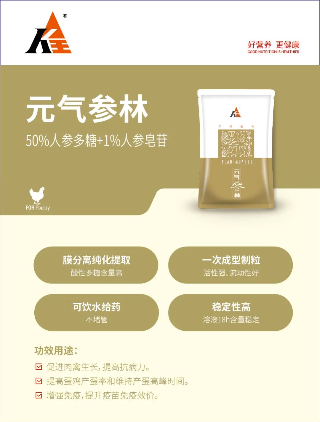 1. 促进肉禽生长,提高抗病力。